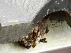 さて次に、実際には軒先付近の瓦の下に蜂のハチができることがあります。