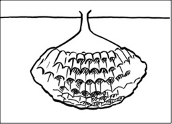 図Bは、土中に作られたオオスズメバチの巣ですが、キイロスズメバチの巣の外被の中も同じようなイメージです。壁間に営巣するときは、育房を水平にし、外被も作らず、平面で広げてゆきます。
